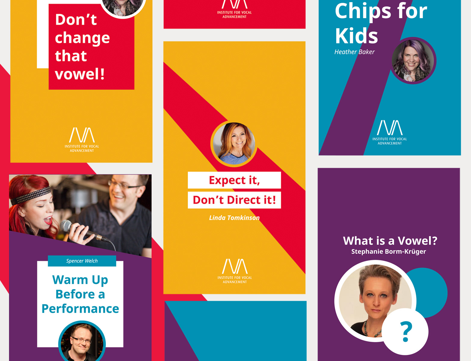 The Institute for Vocal Advancement (IVA) is a global organisation that trains singers in methods of vocal techniques. The brand needed to be modern and simple, to portray professionalism, trustworthiness and openness. I worked around the idea of sound waves with the letters IVA forming the shapes created in a waveform. Our work on IVA included brand design, print collateral and online.